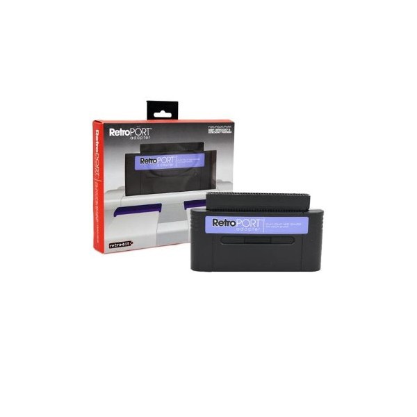 Juega tus viejos juegos de nes en tu Snes no los dejes atras. Utilizando sólo la potencia proporcionada por la ranura del cartucho de SNES, NES el RetroBit RetroPort tiene un autónomo NOAC (Nintendo en un chip) y las interfaces con la SNES para la entrada de botón estándar. A medida que el SNES no tiene patillas de alimentación del vídeo a través de la ranura del cartucho, audio y videos se ofrecen a la RetroPort no por el SNES, pero en cambio, un cable RCA a conector de auriculares estéreo de 3,5 mm situada en el lateral del dispositivo. El cable que se incluye a continuación, puede ser conectado a cualquier entrada de vídeo compuesto de su elección y proporcionar mono duelo, audio estéreo simulado.