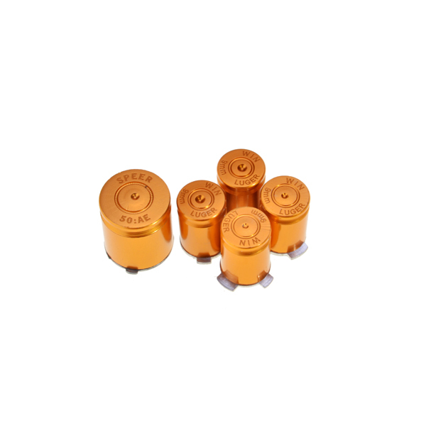 Dale un nuevo y unico diseño a tu control con este nuevo set de botones con diseño de bala color cobre. Estos botones con diseño unico de metal tipo bala son compatibles con controles originales de Xbox 360.